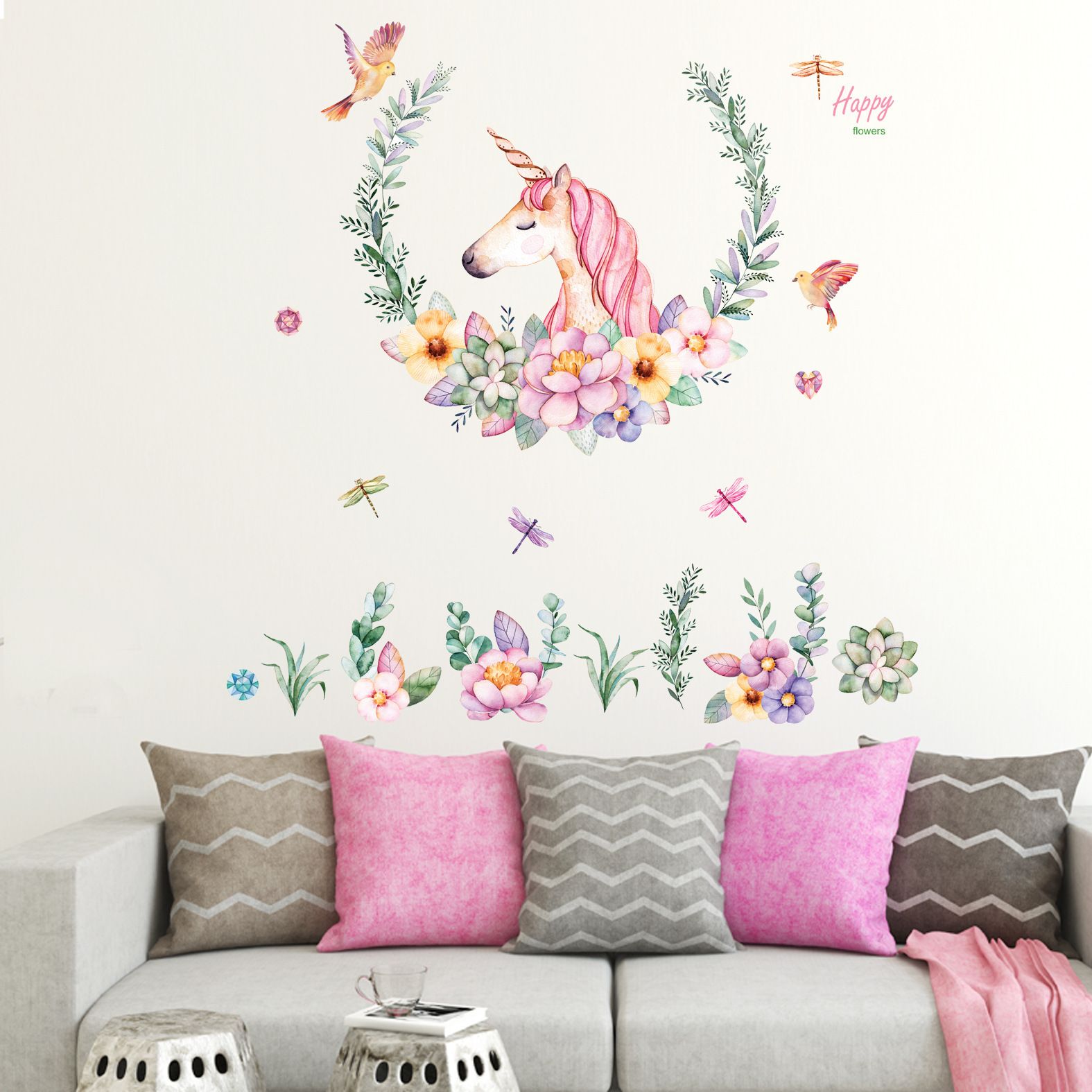 Unicorn Wall Sticker For Bedroom Baby Room Decoration Cartoon Wall