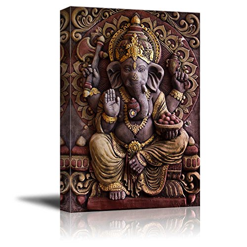 Canvas Prints Wall Art Sculpture Of Gannesa Hindu God On The Orange Wall Modern Wall Decor Home Decor Gallery Wraps Giclee Print Wood Framed