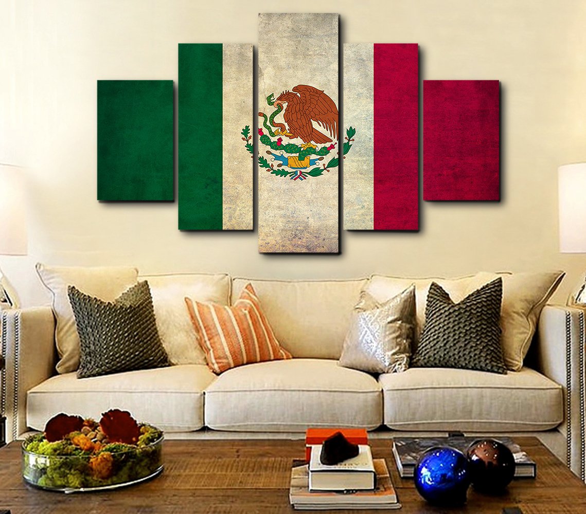 Amazoncom Antique Mexican Flag Wall Decor Canvas Oil Painting