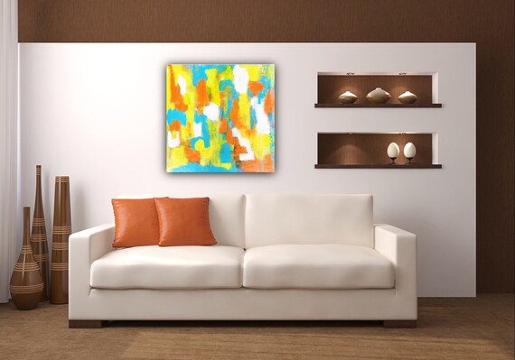Colorful Wall Art Home Decor 24x24 Happy Wall Art Original Etsy