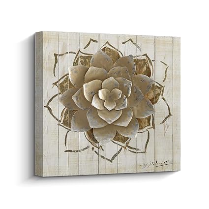 Amazoncom Pi Art Gold Blooming Lotus Metal Flower Wall Art On Wood