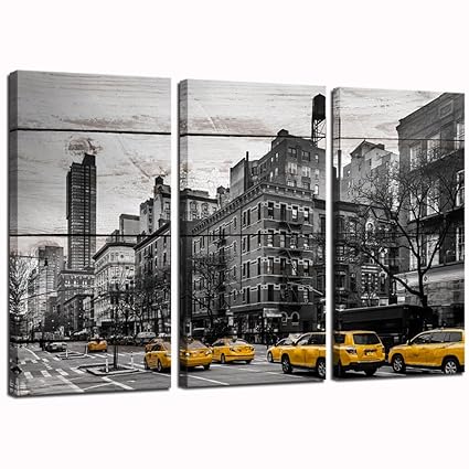 Amazoncom Sea Charm New York City Wall Art Yellow Taxi Cab On